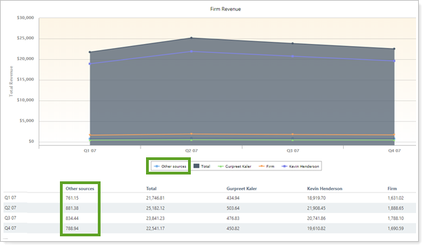 In this example, with Show Other Revenue Breakdown cleared, all Other payees are aggregated into the Other sources on the report.