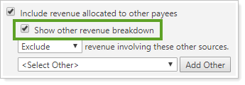 To hide revenue designated for Other payees, clear Include Revenue Allocated to Other Payees.