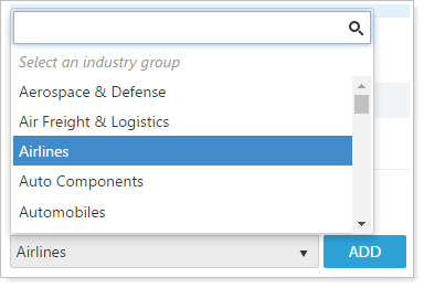 The drop-down list shows a list of all available industries. To add a restriction, select the industry and click Add.