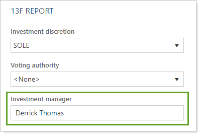 Investment manager lets you specify the person who is the investment manager as described by 13F reporting requirements.