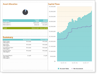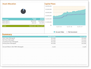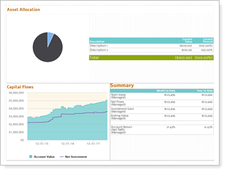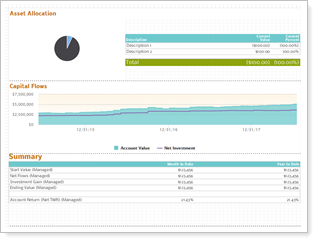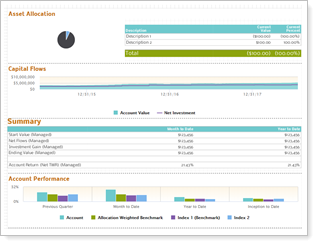 This layout has limited space. If you include an asset allocation pie chart with a legend, it may cause a rendering error for accounts that have many categories. |