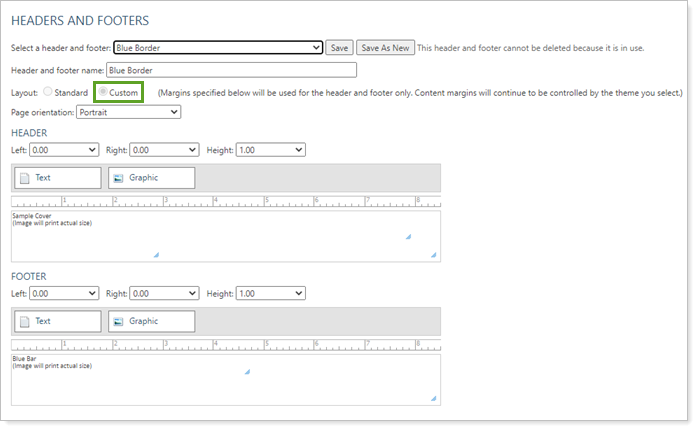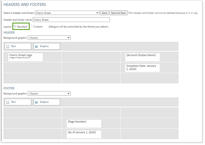 To learn more about the specific settings available for standard and custom layouts, see Header and Footer Settings.