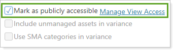 Select this option to share this view for others to see and control who sees the view with the Manage View Access link. Mark as publicly accessible is only available after you save a view for the first time.