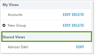 The Shared Views list displays shared views your user has permission to see.
