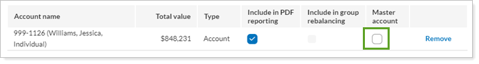 Use the Master Account check box to specify a single account within the group that will be used for address information in PDF reports for the group.