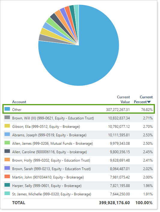 When setting maximum number of groups to show, you balance how the report displays and how much space is allotted with how likely it is that your clients will be confused at seeing an Other category. Additionally, very different groups may end up swept into the Other category, which might be a source of confusion.