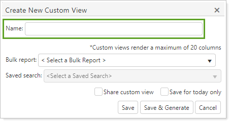 Use this custom view setting to name a new custom view. Other employees in your firm might see this name, so we recommend that you use a specific and easy to understand name.