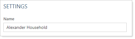 This Household setting allows you to name the Household. The name you type here will appear on the Households page and throughout Tamarac. You can add up to 128 characters, including symbols and numbers.