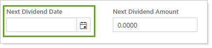 This security setting allows you to enter the next dividend date. You can enter a date or leave this blank.