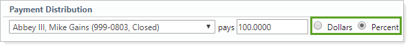 Type the amount or percent for the payment distribution. You can specify the amount in dollars or as a percentage.
