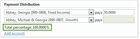 To add more accounts for payment distributions, click Add account to add more payment distribution accounts.