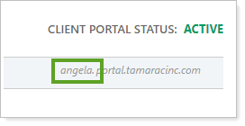 You can find a client's specific portal code on the Client Portal panel under Enable Portal Access. The portal code appears before .portal.tamaracinc.com: