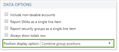 Choose Combine group positions to group all the lots for a security into one row. This option summarizes all the lots for a position, which can help keep the report section shorter.