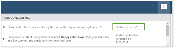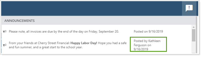 Use this announcements setting to post the announcement so that it does not appear as specifically posted by you. You might use this for general announcements that are not directed at any specific client, or if the clients who will view the announcement all work with different advisors in your firm.