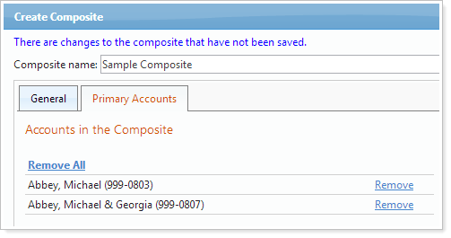 The number of accounts manually added to the composite definition on the Primary Accounts tab of the Create Composite page.