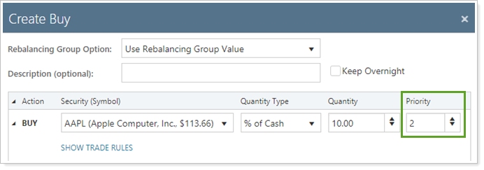 In a directed trade, Priority determines the you want directed trades to be processed. Tamarac Trading processes priority 1 first and then the rest of the trades in numerical order.