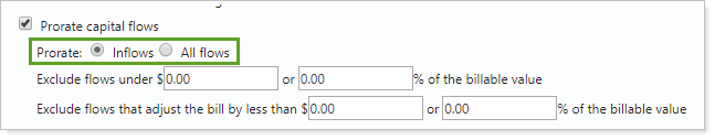 This setting allows you to prorate the billable capital flows based either on inflows or all flows.