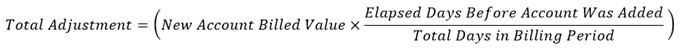| Importance of Billing Inception Value | Ignores the initial value of the account. Instead, it prorates a new account based on number of days the new account was in the period and the billable value at the end of the billing period. | Allows you to prorate a new account based on the value when the account was initially added to the billing group. |