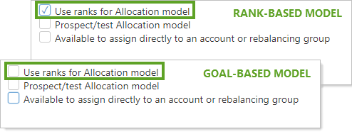 When you create or edit a model, either a Security Level model or Allocation model, you can choose to make that model rank- or goal-based.