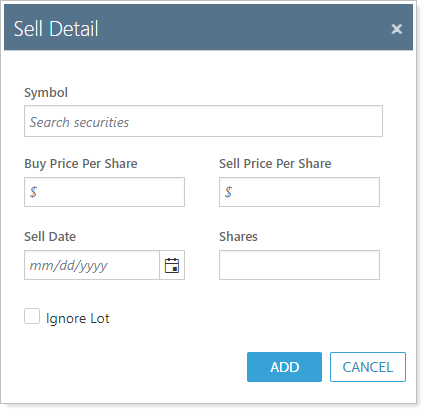 Under Recent Sells and Buys, click Add. This opens the Sell Detail dialog box.