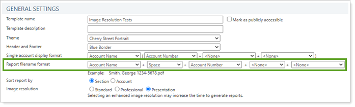 This PDF template setting allows you to choose how you want Tamarac Reporting to name the PDF report files that it generates.