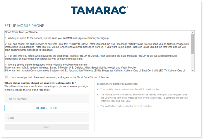 SMS authentication must be turned on separately from dual factor authentication. If you would like to take advantage of SMS authentication, please contact the Account Management team at TamaracAM@envestnet.com to activate this feature.