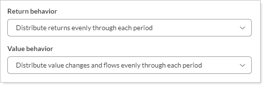 This setting determines when interval return values are recognized. In the Return Behavior list, choose the point at which return behavior is applied.