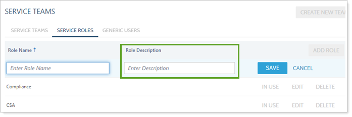 Use this service teams setting to add a long description for the service role. This description appears on the Service Roles tab to help explain what the role was created for. For example, a firm creates a CSA role. They use the Role Description to clarify that it's intended to be applied to all client administrators on service teams.