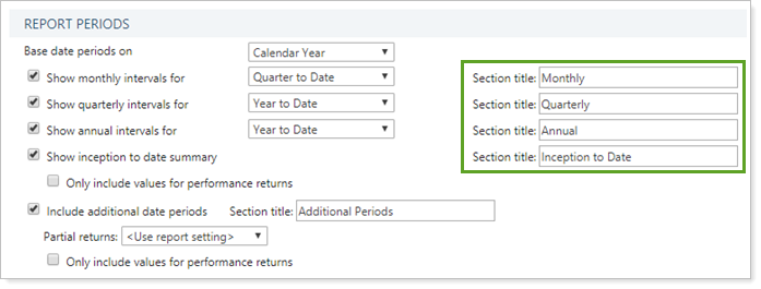 You might change this setting in order to name sections according to your firm's naming conventions. Perhaps your firm calls the Account Performance section Your Account's Returns.