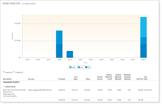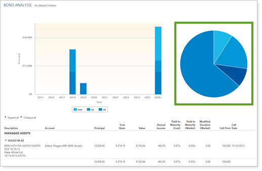 You might choose to display a ratings pie chart with your Bond Analysis report for an at-a-glance visualization of the ratings within a portfolio.