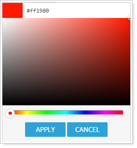Select a color or enter an exact hexadecimal value in the large box at the top. Click Apply to close the dialog and save you changes. |