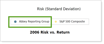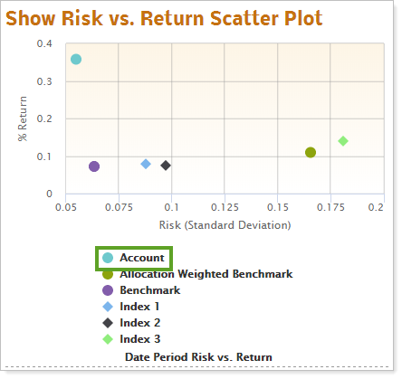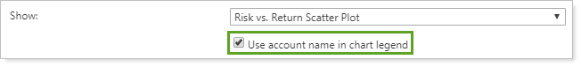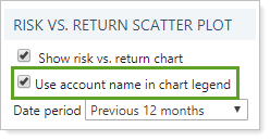 When you show the risk vs. reward scatter plot, you can choose to use the full account name in the legend or truncate it to Account. You might choose to simply call it Account if the account name is very long, you're only reporting on one account, or you're doing a sample report for a prospective client.