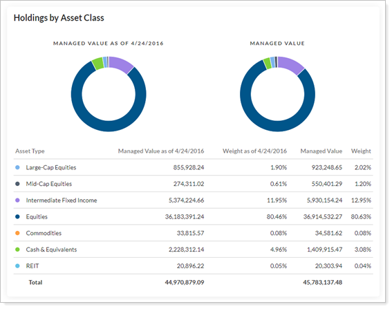 Now, on the Compliance ADV report, these categories can be seen on the Holdings by Asset Class widget.