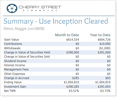 The Use inception date option lets you report partial periods in PDF reports for instances where the account or group was opened after the beginning of the date period selected.