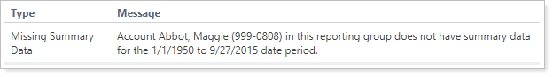 Clear the Use inception date check box to not report on the interval. If you choose to do this, you will get a message indicating that there is no data for that interval, because the account does not extend for the full duration of the date period.