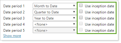Select Use inception date to include a truncated partial period that begins with the inception date, rather than the beginning of the date period.