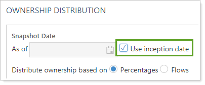 This setting allows you to use the account's inception date for the ownership account date. This setting is selected by default. If this is the initial distribution for these accounts, leave this check box selected.
