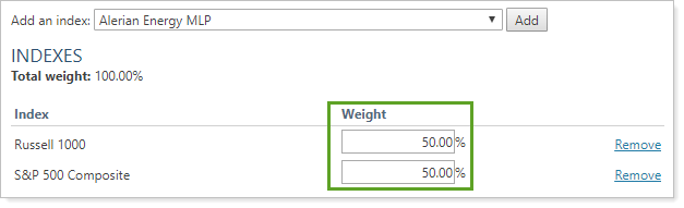 This blended index setting allows you to designate what percentage weight each individual index has in the blended index.