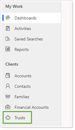 Tamarac CRM allows you to track trusts separately from accounts and financial accounts. This gives you the ability to track information specific to trusts. Trusts may or may not need their own accounts. Trusts can be associated to more than one client, financial account, trustee, and/or beneficiary.