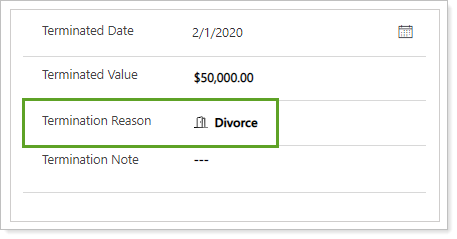 In Termination Reason, enter Divorce.