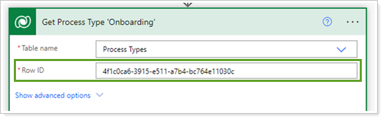 Review and update the Row ID when applying the Process Type GUID in the Get Process Type Onboarding step. If the GUID does not match, update it to properly assign the Onboarding Process Type from your CRM site.