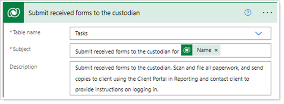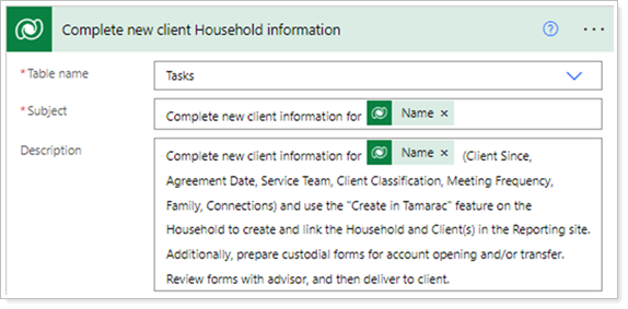Qualifying a Lead and creating new Client records involves creating and completing many tasks. You can streamline your process by using PowerAutomate flows that automatically create common new client onboarding tasks.