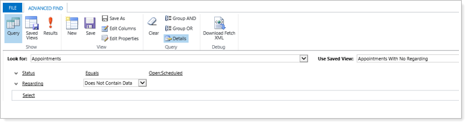Use the Appointments With No Regarding saved view shown below to find the appointment and Set Regard in CRM. We suggest adding the client name in the subject of the appointment to make sure the Set Regard corresponds to the right record.