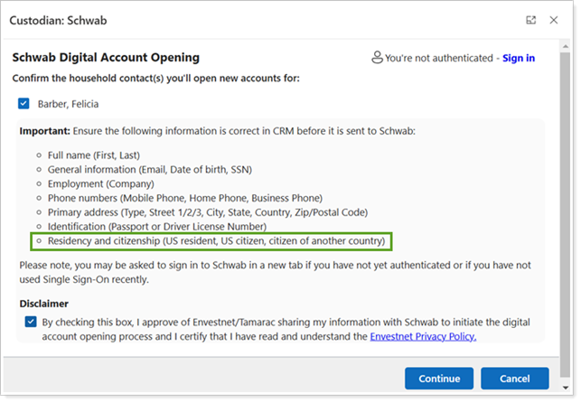 Last year, we introduced the ability to streamline the account opening process with the Schwab Digital Account Opening (DAO) integration, which can save you time by pushing existing Tamarac CRM contact information directly to Schwab.
