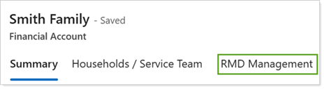 In a Financial Account record, continue to access RMD Management to view the updated Tax Withholding fields in Tamarac CRM moving forward.