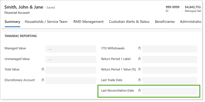 That’s why, with this release, we are integrating the Last Reconciliation Date from Tamarac Reporting into CRM, promoting better visibility into the account reconciliation information that updates during the daily sync with your portfolio accounting system.