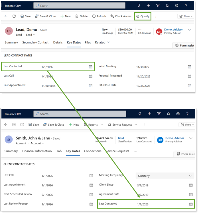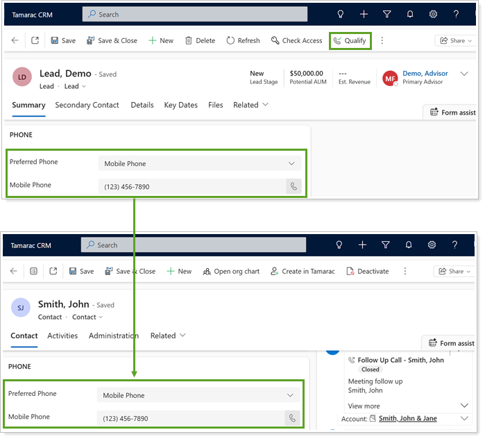 In the past, when you qualified a lead in Tamarac CRM, important data like contact history or details captured during the qualification process didn’t automatically flow to the resulting account or contact records. Advisors or support teams had to manually re‑enter the information, increasing the risk of errors or missed details.