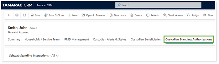 View Schwab Standing Authorizations directly in Tamarac CRM