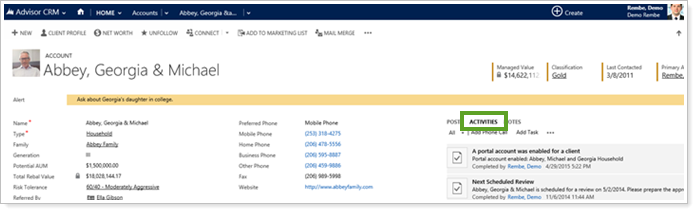 See Activities Pane Displayed by Default on the Accounts and Leads Pages |