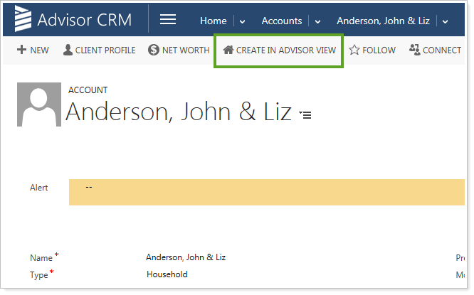 Now when you create Households in Advisor CRM, you can also create them in Advisor View with the click of a button—making it fast and easy to manage your households. This button is hidden for accounts that are already linked, so you won't have to worry about duplicating Households in Advisor View.